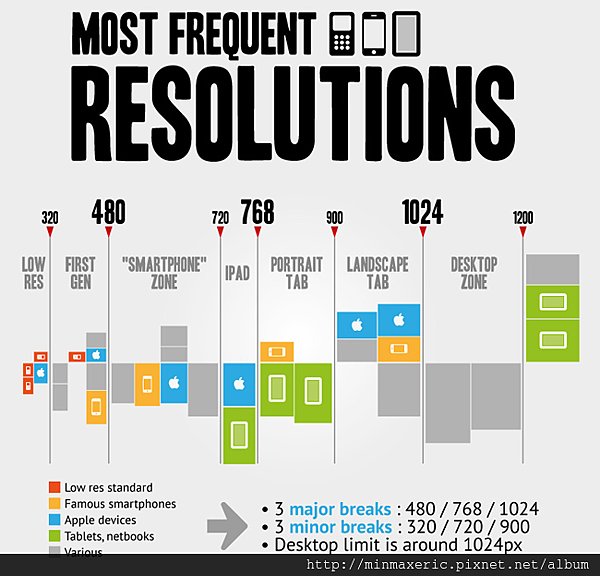 但問題來了,目前行動手持裝置(智慧型手機)的數量,己經正式超越了PC,成為企業不可忽略的新興力量,面對於各式各樣的手持螢幕尺吋,EHTAN MARCOTTE提出了響應式網頁設計概念,所謂響應式網頁設計,就是在整個網頁設計頁面上,會對應不同的螢幕解析度,而有不同的呈現方式,讓瀏覽裝置只是一個載具,使用者才是真正的主角。